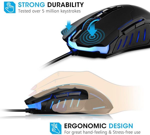 PICTEK Gaming Mouse Wired [7200 DPI] [Programmable] [Breathing Light] Ergonomic Game USB Computer Mi