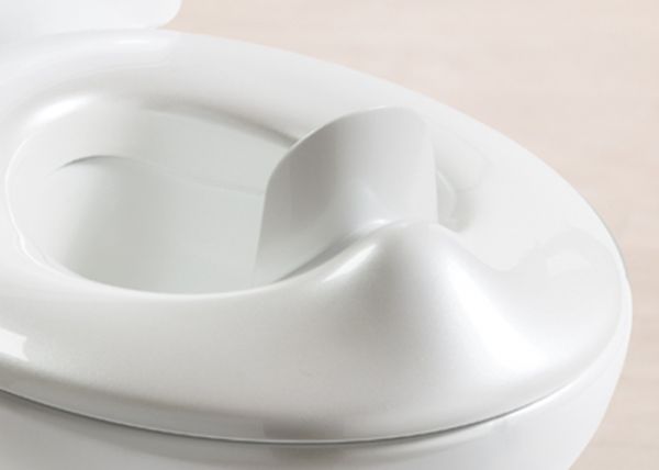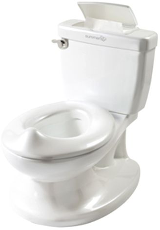 My Size Potty features the look and feel of an adult toilet to help ensure a comfortable and confident transition to the real thing. The toilet handle features a flushing sound to reward and encourage your little one, and a built in wipe dispenser promotes good hygiene habits. This easy to clean potty includes a removable bowl and clip on splash guard for boys.