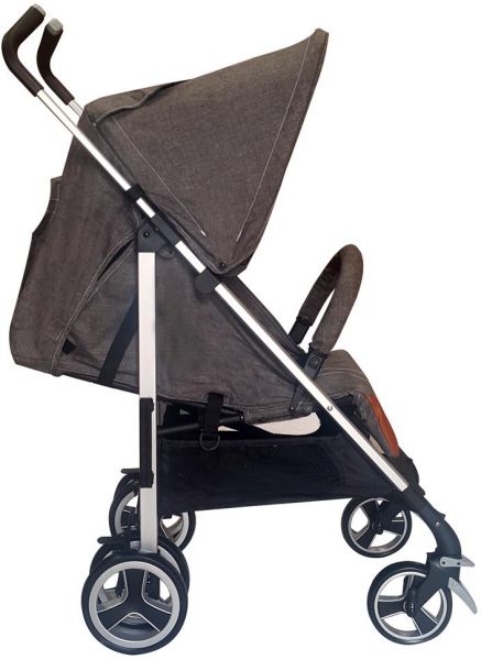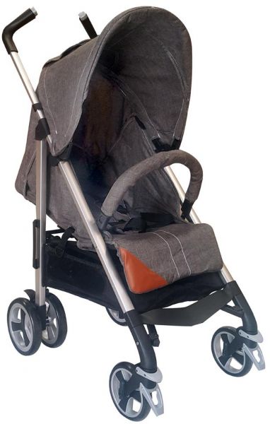 EASY TO FOLD WITH LOCKABLE SWIVEL WHEELS. INCLUDES SUN CANOPY, LARGE SHOPPING BASKET,LINKED BRAKE AND FOLDABLE BUMPER.