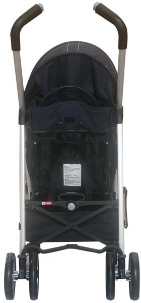 EASY TO FOLD WITH LOCKABLE SWIVEL WHEELS. INCLUDES SUN CANOPY, LARGE SHOPPING BASKET,LINKED BRAKE AND FOLDABLE BUMPER.