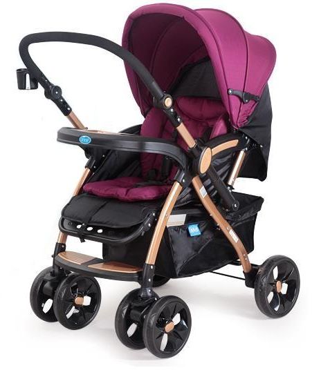 • HANDLE OF SWAP DIRECTION • LENGTHENED AND WIDENED • LOCKABLE FRONT SWIVEL WHEELS • WITH A LARGE STORAGE BASKET ITEMS EASY TO CARRY OUT • 5-POINT HARNESS SAFETY BELT • SUITABLE FROM BIRTH TO 5 YEARS OLD