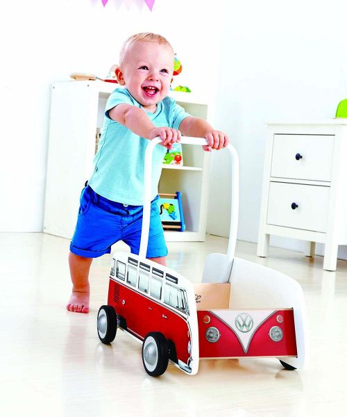 This classic Volkswagen camper van style red walker is perfect for adventurous toddlers and brave babies! Whether learning to walk or simply pushing their favorite toys around, your child will love this stylish walker!
