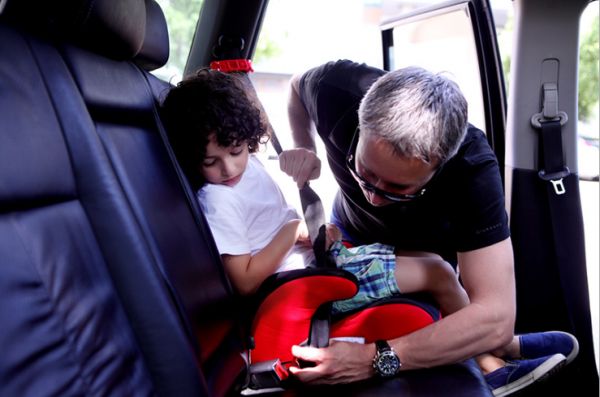 It's also easily attached via the standard 3-point seat belt in the car.