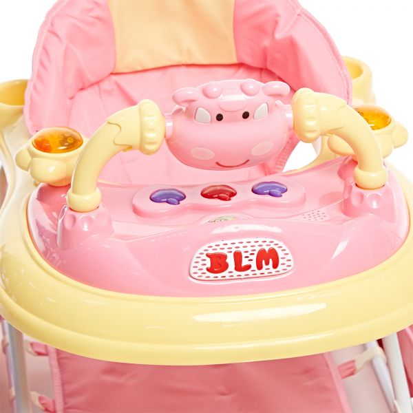 描述:3 height adjustment setting for a customize ride, with swivel wheels with music & toys tray, with rocking function special feature: with rocking function