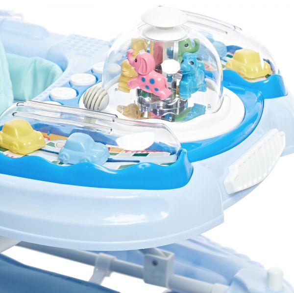 描述:3 height adjustment setting for a customize ride, with swivel wheels with music & toys tray Special Feature: With rocking function