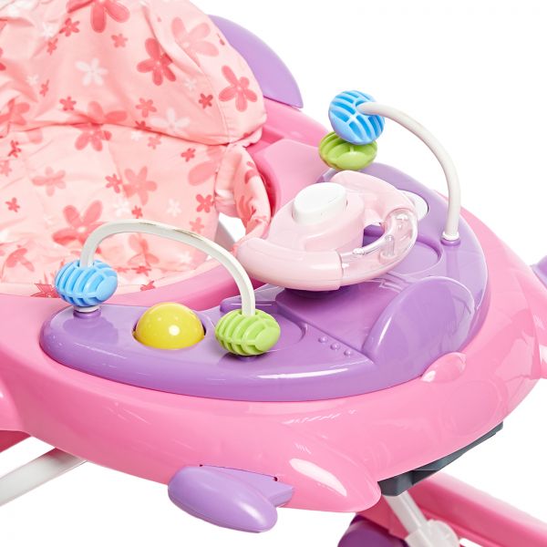 描述:3 height adjustment setting for a customize ride, with swivel wheels with music & toys tray