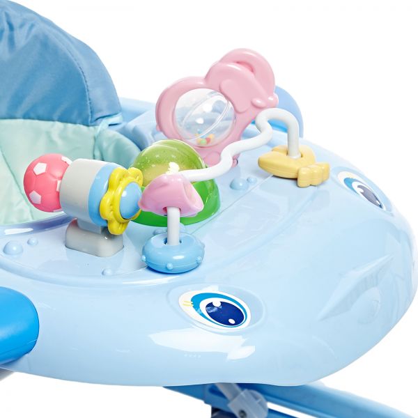描述:3 height adjustment setting for a customize ride, with swivel wheels with music & toys tray