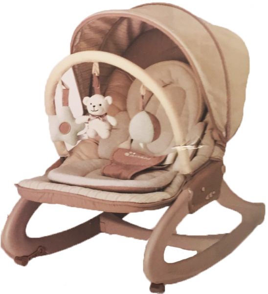 Rocking chair for children grey colored , provider vibrator two different speeds can be set as fast as appropriate , and a lid and a voice spongy games for entertainment , and safety belts and also install the base of the chair forward and where it can be put in place to install the chair for vibration.