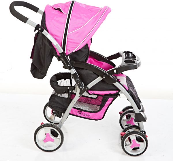 Let your baby giggle and blossom with joy when he travels around in this Baby Stroller from My Baby. It has a 5 point safety harness belt and a large storage basket. This Stroller has swivelling wheels with suspension and an adjustable canopy. It also provides your baby with spacious and comfortable interior space.
