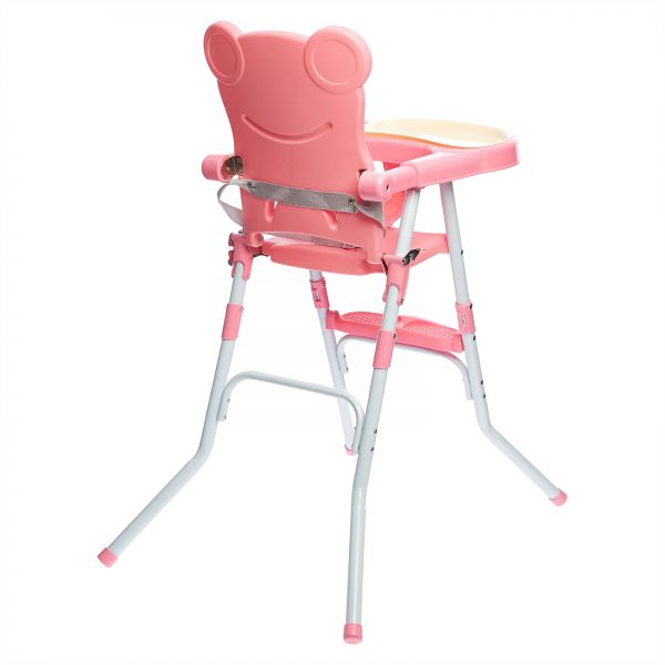 Enjoy the meal time as a family even along with your toddler. Your baby will feel secure in this chair strapped into the 5 point safety harness. The seat is padded for the comfort of your child with a wide back rest and a food rest. The large tray can accommodate baby's plate and the bowl. Any spillage can be wiped clean easily. After dinner, this high chair can be folded down flat to be stored away making it a compact item.