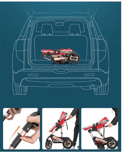 4. Multi-position seat can be upright, semi-reclined, and then more deeply reclined. So it is suitable for babies from 0 to 3 years old. Easy to fold and can be collected in a car trunk. Once collapsed it is self-standing. Parents push it go out for shopping, traveling, taking a walk, playing and chatting in the park or for a picnic outdoor.