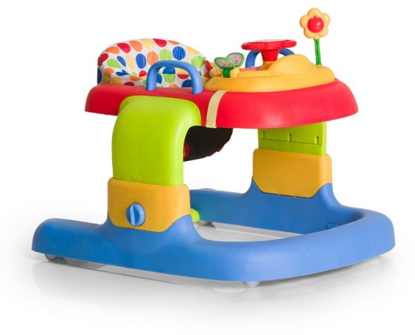 It provides your child with ideal entertainment options and supports its first steps. The detachable play part promotes the motor skills of your child. By pressing a button, your child can listen to different melodies. Great flashing lights are located in the lower cross-bar. The 2 in1 Walker is height-adjustable and can be adapted individually to the height of your little offspring. Stoppers make for safety on your child's first expeditions. If you remove the seat insert and if the rear cross-bar is shifted, the 2 in1 Walker can be turned into a walking frame in no time.