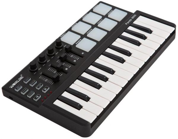 - 8 control buttons: CC Mod, Mod, Bank, Prog, Pitch down / Pitch up, Octave down / Octave up.