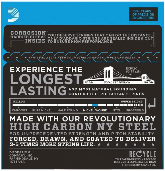 - EXP Coated nickel-plated steel for distinctive bright tone and 4 times more life