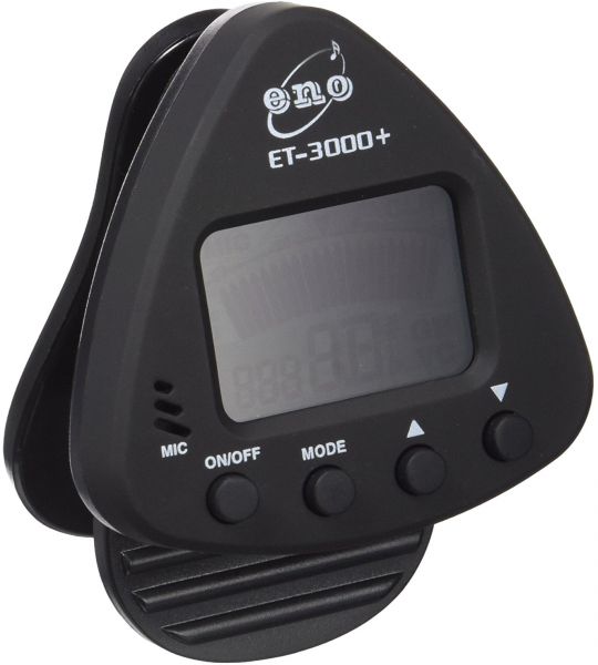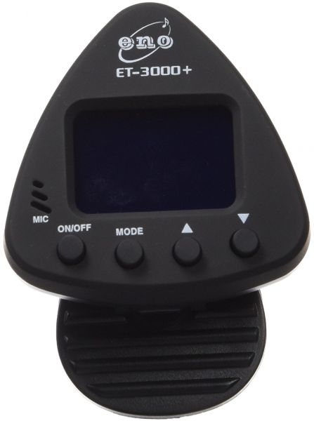 The Technote Eno 3000 tunier is one of the most popular clip on tuners in the market. This white model is an essential for any guitar player or acoustic intrument player. The easy to read colour LCD display displays the note in red until you are close to note pitch when it turns to green for fine tuning, shing a digital needle that indicates whether you are flat or sharp. Simply get the needle to the middle for perfect tuning. The tuner has selectable tuning modes of either traditional MIC input or CLIP tuning. The Eno 3000 has 4 tuning modes of G (Guitar), B (Bass), V (Violin), C (Chromatic) for convenient tuning . It also has a 360° rotatable base, to let you look at the display easly and correctly tune the tone. It has a removable cell battery and i you use the tuner for a long period is is fitted with Auto power off after 3 minutes' standby time to conserve the battery. It has A4 frequency tuning range of 430Hz - 450Hz Tuning range 0A - 7C Accuracy of 1 cent Battery CR2032