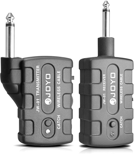JOYO digital wireless transmitter and receiver. High-quality voice, all digitals, 2.4G Audio transfer makes us flounce away the bondage held by wire while playing. Transmission distance of 20-30 meters indoor; 80-100 meters outdoor. Unlike analog transmitters, our digital system is not affected by outside signals or phones. This unit works well even when 6-8 pairs are operating simultaneously within one meter. They do not have interference by each other, wireless routers, bluetooth devices, etc. Signal to Noise and Distortion: greater than 87dB. Supports "One to Many" (one transmitter to one or many amplifiers). Low-latency. Rechargeable battery: lithium battery (included; lasts for approximately 4-5 hours after a charge of 2 hours).