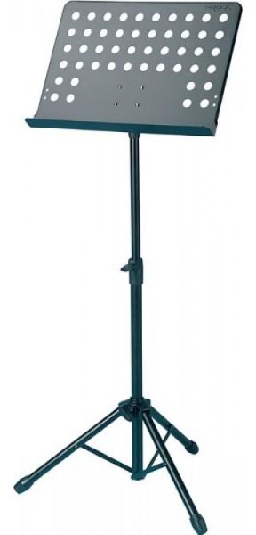 描述:Professional music stand with perforated orientable music holder designed to support the heaviest loads. New block clamp system for a fast, non slip height-adjustment, and a wide tripod base.