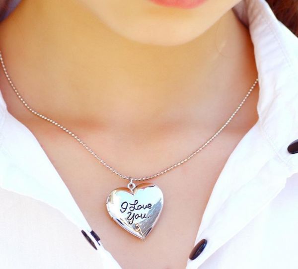 I Love You Photo Frame Heart Locket Pendants Necklaces Fashion Jewelry