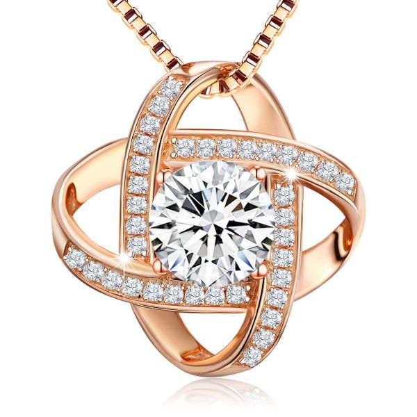 - Design Concept: The elegant endless circle symbolizes eternity of love. The entangled love makes us never ever be apart no matter for lovers, couples, friends or families. And rose gold is fashionable color of necklace at present.