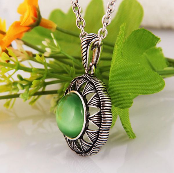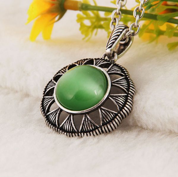Cat Eye Ornaments Fashion Creative Hollow Emerald Green Pendant Round Retro Necklace New men And Wom
