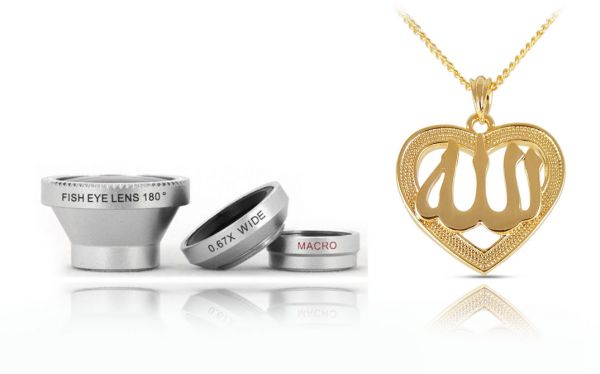 This Gold-Plated Necklace with high quality 18K Gold-plating. In approx. 45 x 36mm, (Chain is free of cost and given in random design) this item is given with free 3 pcs universal mobile camera lenses.