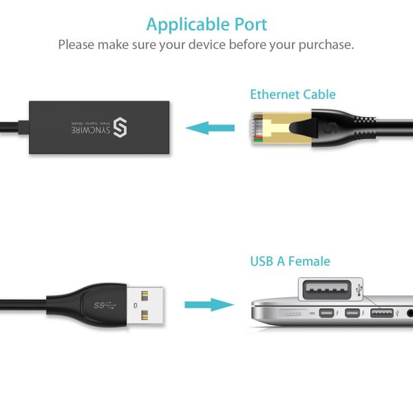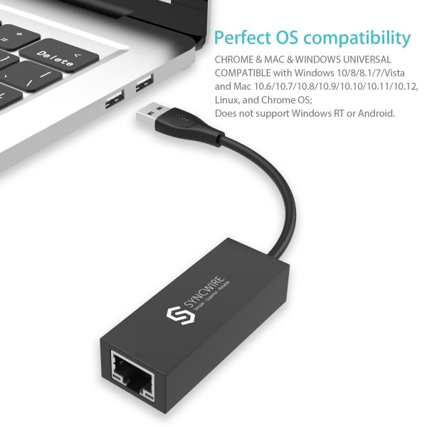 There's the Realtek smart chip built in Syncwire USB 3.0 to Ethernet adapter. Support Plug & Play. No external power and software drivers are required. The USB 3.0 and Ethernet connector is made with automated welding technology. The wire outer jacket is made from tear-resistant and high-elasticity TPE material. With high-quality and sturdy engineering, Syncwire USB 3.0 to RJ45 Ethernet adapter is a must have for you.