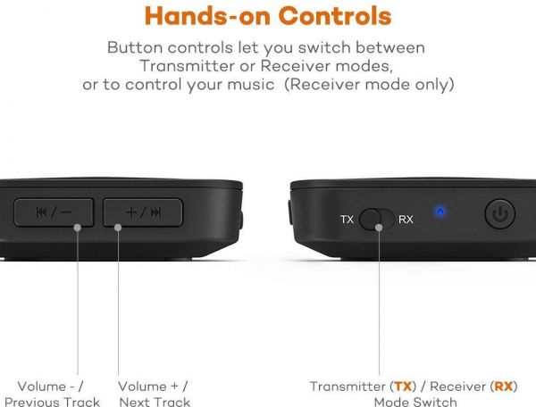 TaoTronics Bluetooth 4.1 Transmitter/Receiver, Wireless 3.5mm Audio Adapter (aptX Low Latency, Pair