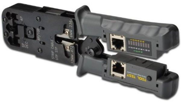 Multifunctional Network Tool Test Crimping Plier Tool With Cable Tester / Crimping Tool + Tester 2-in-1 Smart SolutionTOOL TEST is a small hand held cable map tester.TOOL TEST will automatically test cable and indicate the result of the cables pin to pin configuration.With its unique combination of a Crimper Tool and a Cable Tester in one, it is the smallest and most convenient and innovative tool in the market worldwide today. Features:Testing for both UTP and STP cablesTesting cable for continuity, opens, shorts, mis-wiresPin to pin indicationDual-model test function: single and continuous testAuto power saving / Low power indicatorSingle and multi-wired cable crimpingModular crimping plugs: 8P8C (RJ45), 6P6C (RJ12), 6P4C (RJ11)Integrated cable stripper and cutterCrimping tool and cable tester in oneDetachable cable testerBattery needs: DC 4.5V (LR-44 x 3pcs) - not included in package