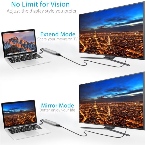 Features mirror display and extend (video expansion) display which enables your families to watch video, and also allows you to work without interruption.
