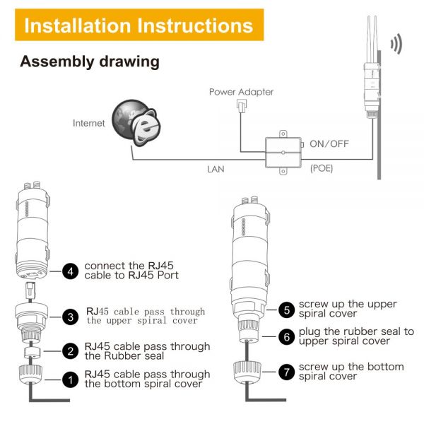 By combing your power and data connection into a single cable, PoE simplifies the setup of the High power Outdoor WiFi Access Point/Bridge. Combining power and network access into a single RJ-45 connection for the wireless Access Point allow you to install the access point in hard to reach location without worrying about running both power and Ethernet cables