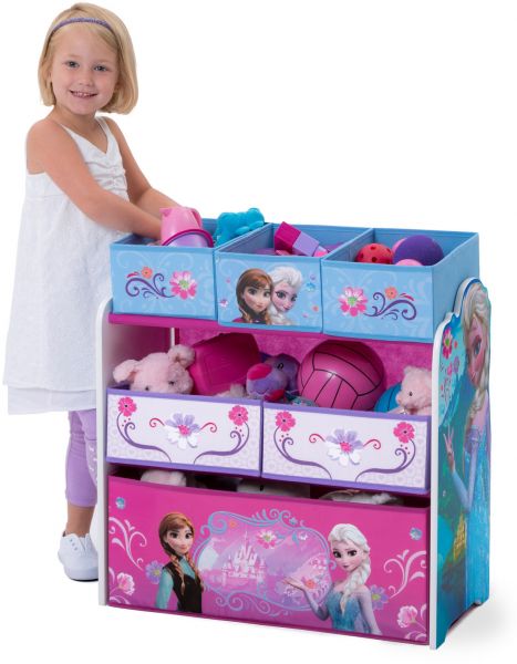 This Disney Toy Organizer is a great way to encourage your kids to keep their room organized. With a Frozen Princess theme, this playroom storage box features princesses Elsa and Anna from the movie by the same name. This charming and functional 3 tier storage chest includes six uniquely sized fabric storage bins. It is just what you need in the toddler's room or in the family room to keep toys organized and out of the way when they are not being used.