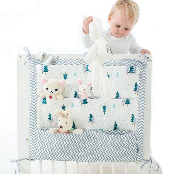 Bed Hanging Storage Bag Baby Cot Bed Brand Baby Cotton Crib Organizer Toy Diaper Pocket for Crib Bed