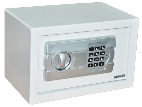 Perfect Value for money solid steel body SAFE. Digital ElectronicAccess using PIN Code combination. 2 additional Laser Cut Master Keys foremergency operation. The laser cut keys cannot be copied or duplicated. SecureWall Mounting options. Metallic White color finish. Batteries, fixing screwswith related accessories and laser cut master keys included in the package.Enjoy 2 years’ manufacturer warranty against all manufacturing defects.MAIN FEATURES:Solid Steel Body ConstructionMetallic White Color FinishWall Mountable for safer storageDigital PIN Code for OpeningBattery OperatedDurable Heavy Duty Rubber KeypadsFire & Tamper ResistantDouble Bolt for stronger lockingSmall Size for easy concealingSet your own PIN CodeLaser Cut Keys for Emergency OpeningKeys cannot be duplicatedSize: 32 X 24 X 21 CMSWeight: 9KGS