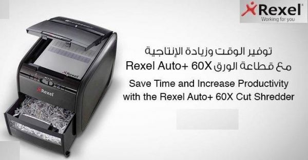 Rexel Auto+ 60X Cross Cut Paper/Credit Card Shredder with 60 Sheet Capacity - Black