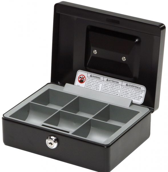 描述:0.08 Cubic black small cash box, Privacy Key, Steel Construction Provides Added Security, Convenient Carry Handle, Removable Tray Provides Organization.