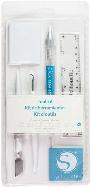 Silhouette Tool Kit -Get all the necessary tools for your Silhouette machine in one kit! This tool set comes with a hook tool for weeding vinyl and heat transfer materials, a scraper tool for scraping your mat or applying vinyl onto project surfaces, a spatula to help lift delicate cut-out pieces from the cutting mat, a pick-me-up tool for picking up and placing small items, a 6 inch clear ruler, and microfiber cloth to clean your machine's LCD screen.