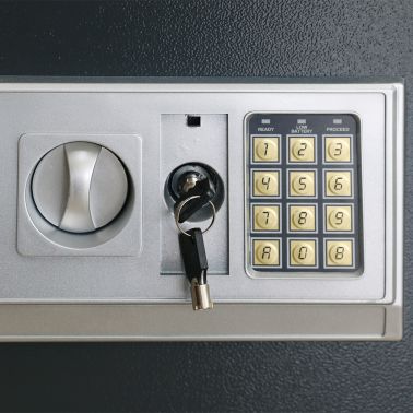 This highly secure electronic safe is perfect to use at home or in the office. This electronic safe is constructed of heavy-duty steel with powder coated finish. Equipped with a 2 bolt locking mechanism, along with the digital code opening system, this safe provides protection from theft and burglary. This durable safe is also installed with a removable shelf to keep your belongings organized. The floor is lined with a red carpet to keep your valuables from scratching. This electronic safe can either be wall-mounted or secured to the floor with the included bolts. Delivery includes four AA batteries.