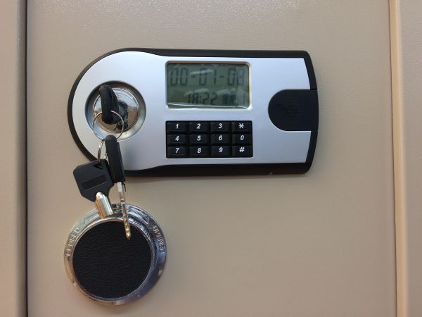 - ( KEY OR DIGITAL NUMERIC PANEL WHICH OPERATE BY AA BATTERIES. THERE IS SECURITY ALARM AS WELL IF MULTIPLE TIME ENTER WRONG PASSWORD