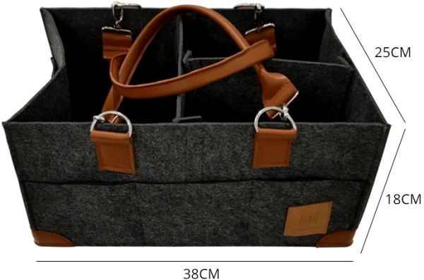 - NO MORE CHEAPLY-MADE NURSERY CADDIES with thin walls that bend in a breeze, or handles that get easily ripped! Crafted to perfection from premium FELT with REINFORCED SEAMING and durable SYNTHETIC LEATHER HANDLES, this changing table organizer is made to OUTLAST your baby's diaper wearing years!