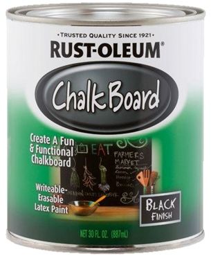 The Specialty 30 oz. Black Flat Chalkboard Paint creates a usable chalkboard on a wide variety of surfaces including wood, metal, concrete, masonry and drywall. This durable, latex-based paint is easy to erase or clean with soap and water and. Low odor.