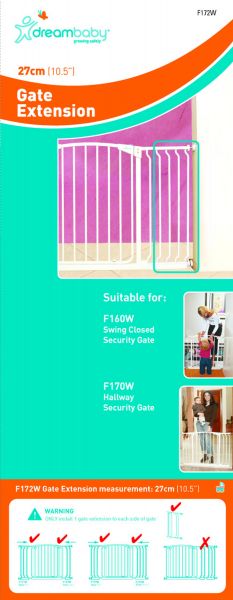 Dreambaby Swing Close Security Gates provide greater security and peace of mind for busy parents and caregivers. They are suitable for both the top and bottom of stairways, doorways and hallways, and pressure mounted installation means no screws or drilling. Extensions can be a huge help if your hallway or stairway is too wide for a gate.