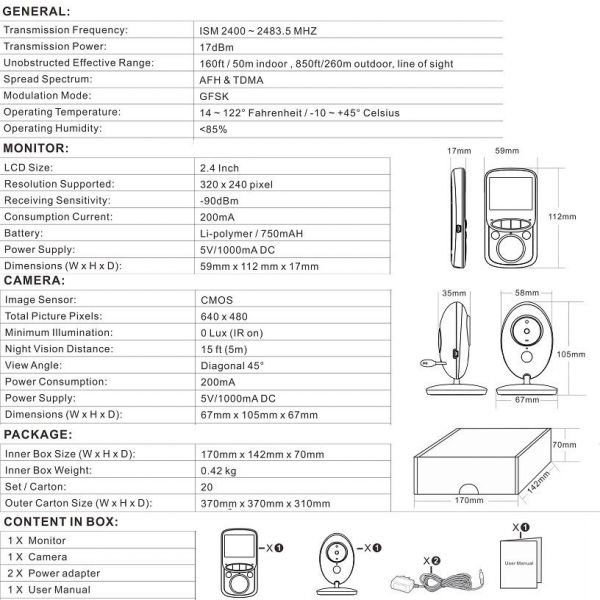 Wireless LCD Audio Video Baby Camera Monitor VB605