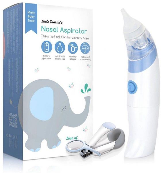 - SAFE AND RELIABLE: The FDA approved electric nasal aspirator generates enough suction to remove stubborn mucus while not harming your baby's delicate sinuses. Two exchangeable nozzle sizes, molded of soft silicone, will always fit your baby's nose comfortably.
