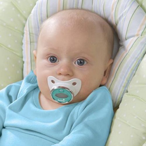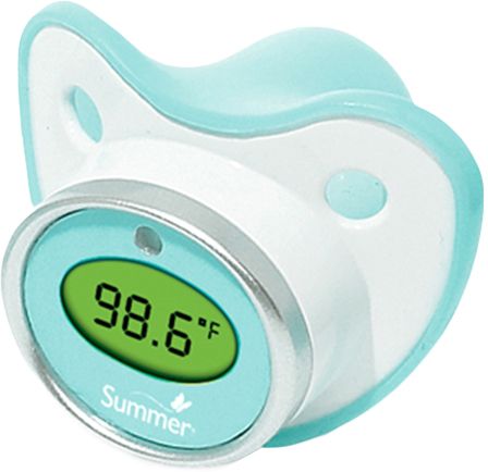 Provide soothing comfort while taking baby’s temperature. The Pacifier Thermometer’s convenient Fever Alert glow feature allows parents to get a nighttime temperature reading without disturbing baby. A protective cover is included for travel and clean storage.