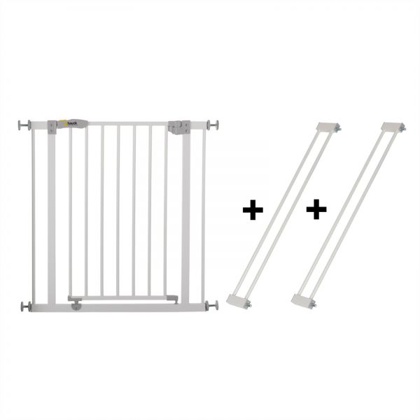 The safety gate Open'n Stop offers child-friendly safety at home. The attachment is done fast and easy. The metal gate is clamped by pressure mounting between walls or doorways. Drilling and screwing is not necessary.The Open'n Stop Safety Gate is suitable for widths from 75 to 81 cm and has a two-fold manual locking mechanism. It can be opened with one hand and locks reliably in a childproof closure.The Open'n Stop Safety Gate is SGS-certified and offers optimum safety. The box includes 2x 9cm extension to allow for widths between 93 and 99cm.