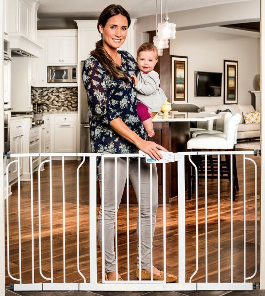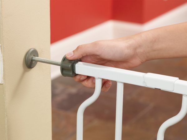 1158 Features: -Includes 6", 8" and 12" extension kits. -Stands 31-inches tall; All steel design. -Expands up to 58-inches wide to accommodate a variety of openings. -Pressure mounting system for easy installation. -Convenient walk-through design. -Juvenile Products Manufacturers Association certified. Finish: -White. Material: -Metal. Dimensions: Overall Height - Top to Bottom: -31". Overall Width - Side to Side: -58". Overall Depth - Front to Back: -2". Overall Product Weight: -15 lbs.
