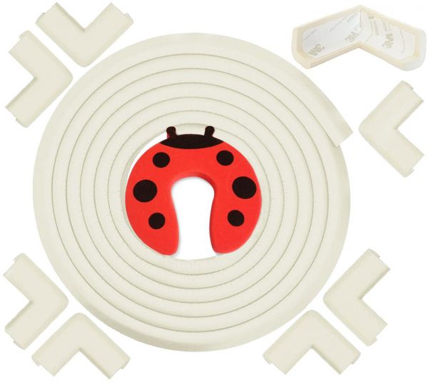 - EVERYTHING YOU NEED TO KEEP YOUR LITTLE ONE SAFE: This kit comes with 6.3m of soft, rubber, self-adhesive edge guard. You'll also get 8 self-adhesive corner protectors and a ladybird design door stopper - to stop adventurous toddlers getting their fingers caught in doors.