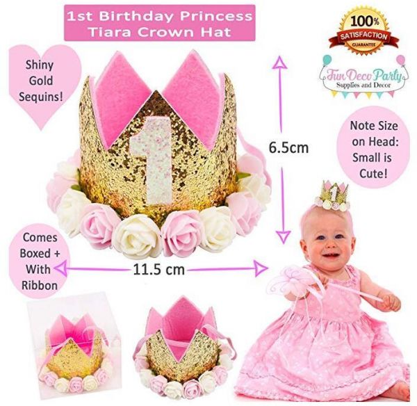 ALL-IN-ONE SUPER VALUE SET WITH TIARA CROWN HAT: Everything you can imagine in one bundle to fill your party area with a classic combination of bright, glittery and soft shades of Pink, Gold, Peach and White. Your guests, and most importantly your angel baby girl will absolutely love these decorations. That's our promise!
