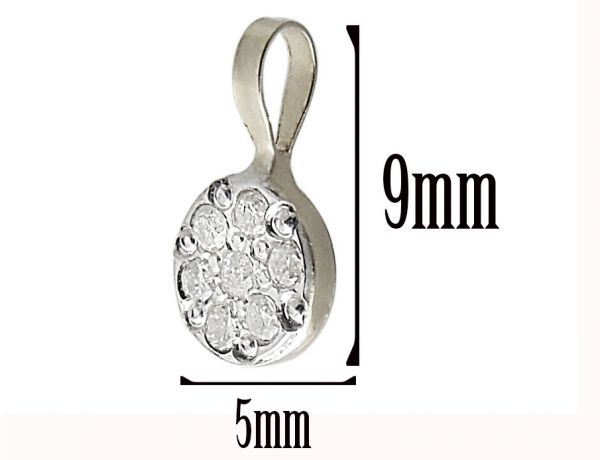 Dimensions: about 1mm (each Diamond Size), 9mm (total Pendant length), 5mm (circle Diameter)