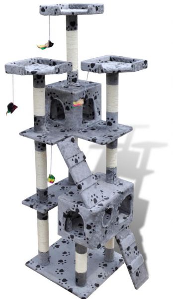 This is a complete and comprehensive cat tree that offers a fantastic playground for a couple of cats at once. It provides your cats with so many features, so that they will leave your drapes and carpet untouched. Your cats will thank you with endless purrs if you bring this cat tree topper in your home. This fully-equipped cat tree has two ladders and multiple decks where your cat can rest comfortably. There are also two condos where your cat can hide safely. The whole cat tree, entirely covered with very soft plush and sisal, will keep your cat busy for hours. This cat tower is characterized by very good workmanship and a stable construction, which in combination ensure its years of service. This cat tree is also easy to maintain and assemble.